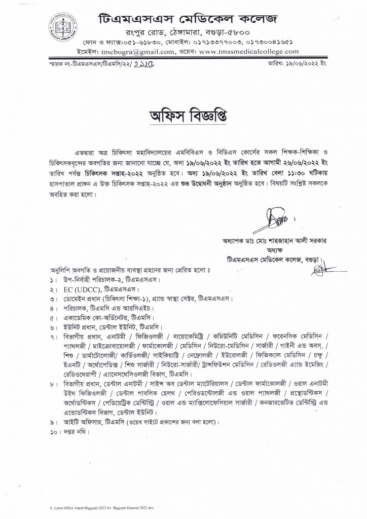 নোটিশ (চিকিৎসক সপ্তাহ-২০২২)
