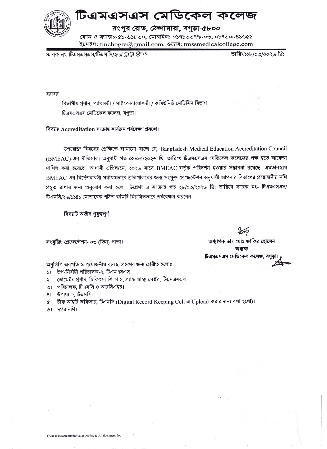 Accreditation সংক্রান্ত কার্যক্রম পর্যবেক্ষণ প্রসঙ্গে (ফেজ-03) Post author:Md. Harun Rashid Post published:March 28, 2026 Post category:Uncategorized Post comments:0 Comments You Might Also Like Orientation Program (2021-2022) July 31, 2022 অফিস সার্কুলার May 19, 2025 Medicine & Allied Subject Co-ordination Meeting Notice September-25 September 14, 2025 Leave a Reply Cancel replyCommentEnter your name or username to comment Enter your email address to comment Enter your website URL (optional) Save my name, email, and website in this browser for the next time I comment.