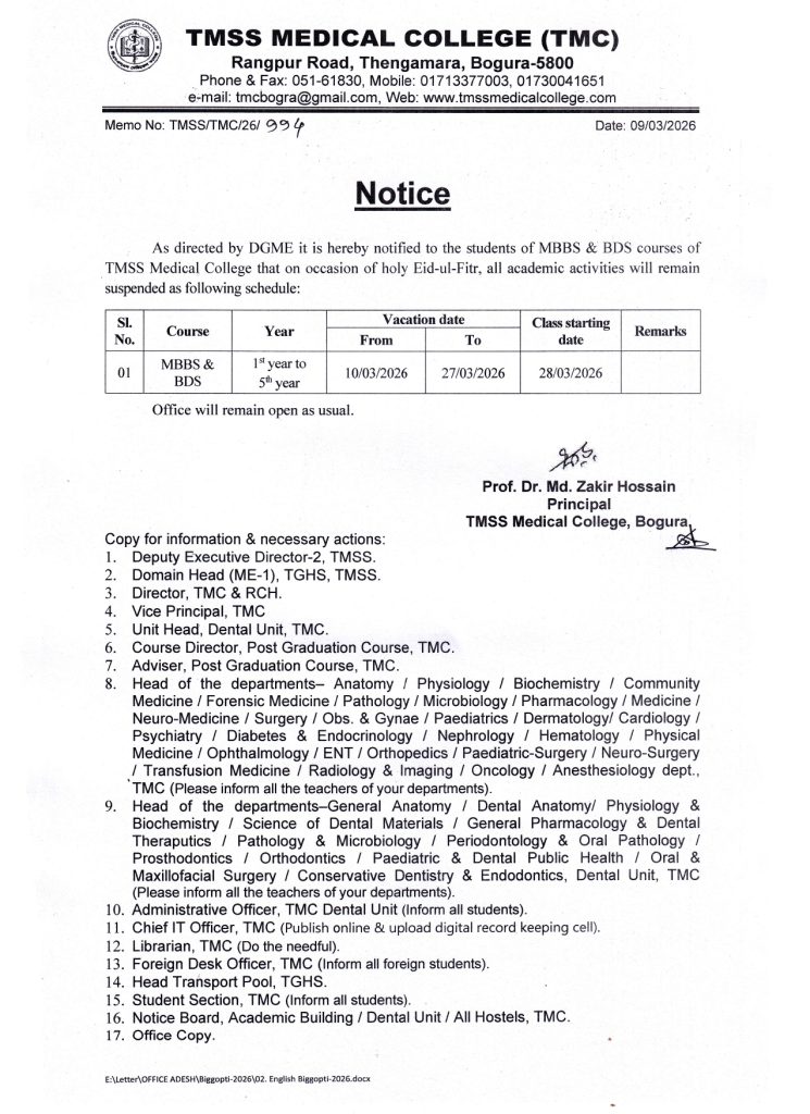 Holy Eid-ul-Fitr for MBBS & BDS Students