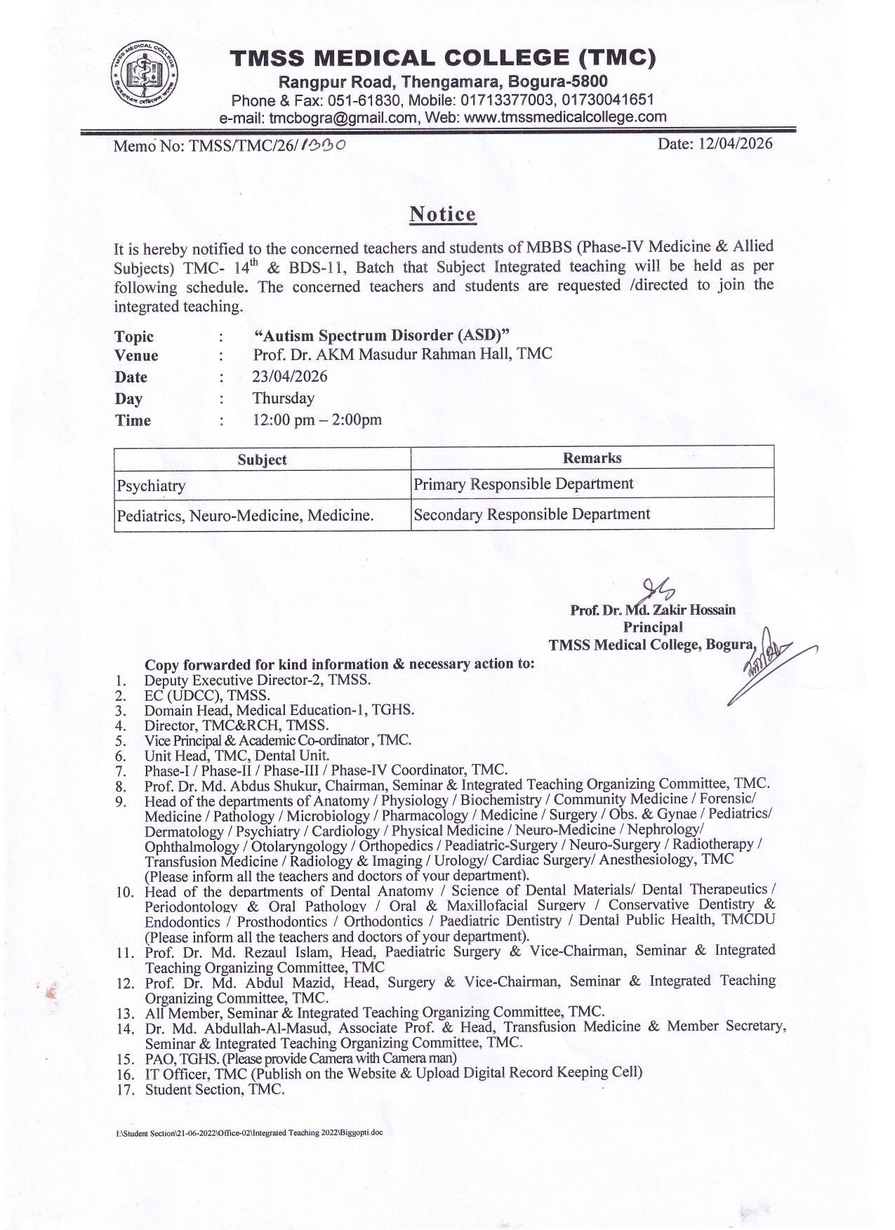Integrated Teaching 23/04/2026 Post author:Md. Harun Rashid Post published:April 22, 2026 Post category:Uncategorized Post comments:0 Comments You Might Also Like Notice ( Intern Doctor Farewell & Reception) July 5, 2022 Notice ( CME Team Visit) December 3, 2023 মতবিনিময় সভা উপলক্ষ্যে নোটিশ_ July 6, 2023 Leave a Reply Cancel replyCommentEnter your name or username to comment Enter your email address to comment Enter your website URL (optional) Save my name, email, and website in this browser for the next time I comment.