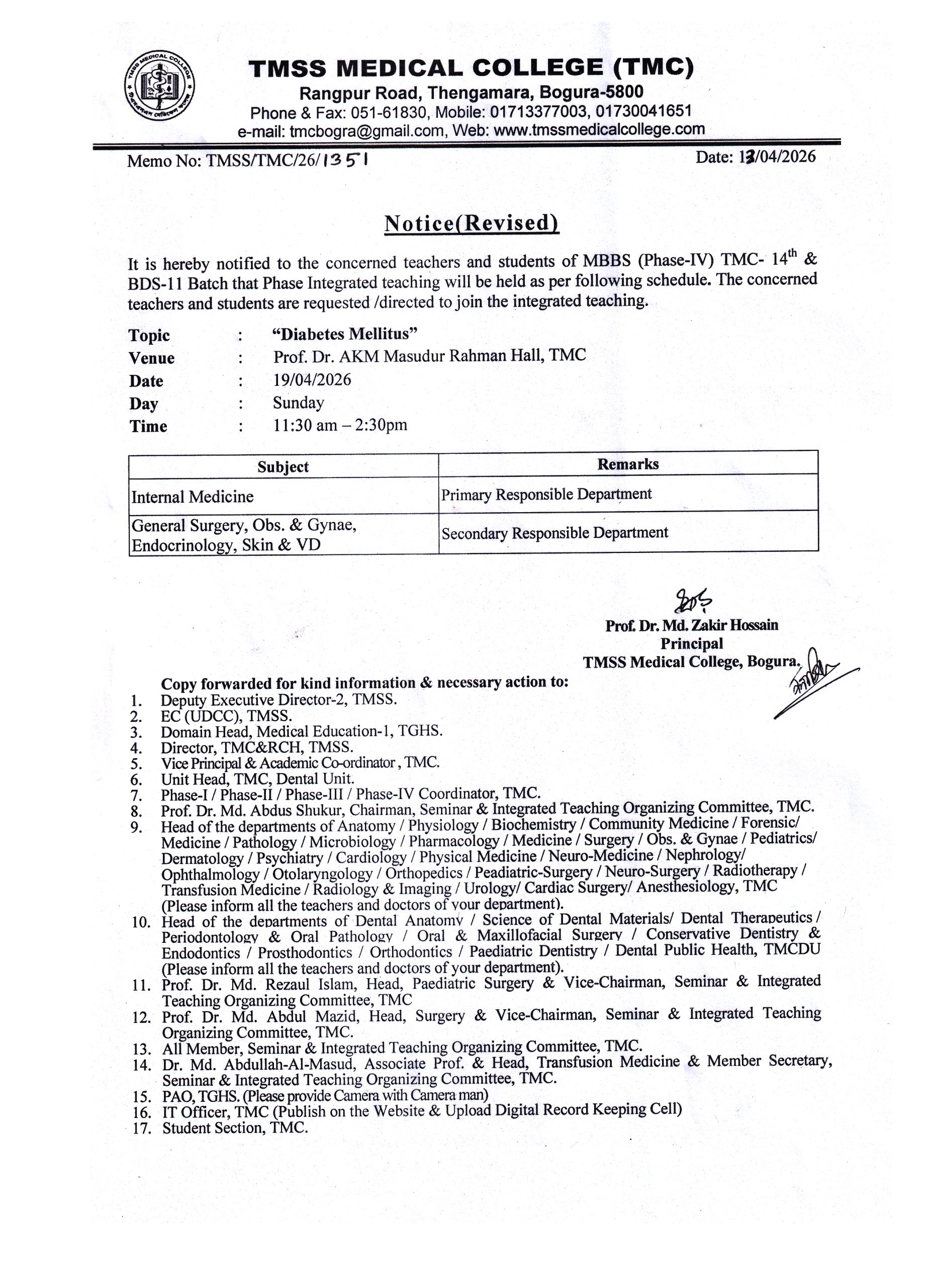 Integrated Teaching, Topic- Diabetes Mellitus Date:19/04/2026 Post author:Md. Harun Rashid Post published:April 18, 2026 Post category:Uncategorized Post comments:0 Comments You Might Also Like Notice of Integrated Teaching November 27, 2025 Seminar Notice January 20, 2024 Notice About Buddha Purnima May 14, 2022 Leave a Reply Cancel replyCommentEnter your name or username to comment Enter your email address to comment Enter your website URL (optional) Save my name, email, and website in this browser for the next time I comment.