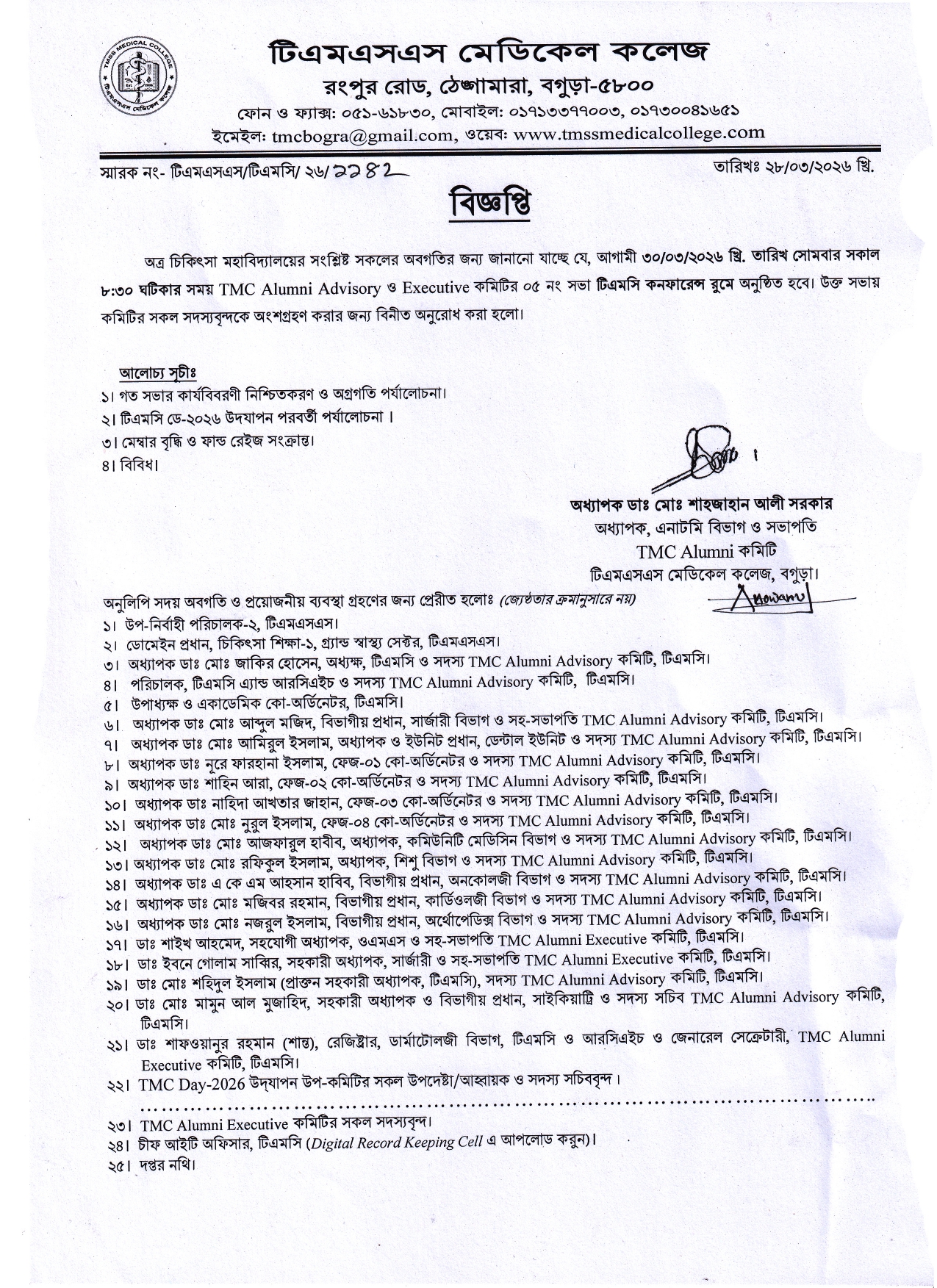 Meeting Notice of TTMC Alumni Advisory & Executive Committee Post author:Md. Harun Rashid Post published:March 28, 2026 Post category:Uncategorized Post comments:0 Comments You Might Also Like ২০২৫-২০২৬ খ্রি. শিক্ষাবর্ষে বেসরকারি মেডিকেল কলেজ/ডেন্টাল কলেজ/ইউউনিটসমূহের এমবিবিএস এবং বিডিএস কোর্সে অনলাইন ১ম ঐচ্ছিক মাইগ্রেশন এবং অপেক্ষমাণ তালিকা থেকে দেশি শিক্ষার্থী ভর্তি। April 5, 2026 ছুটির নোটিশ January 4, 2024 July forever July 23, 2025 Leave a Reply Cancel replyCommentEnter your name or username to comment Enter your email address to comment Enter your website URL (optional) Save my name, email, and website in this browser for the next time I comment.