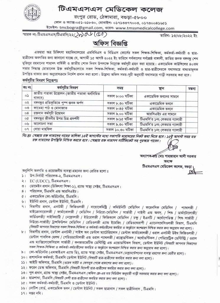 Notice (National Mourning Day)