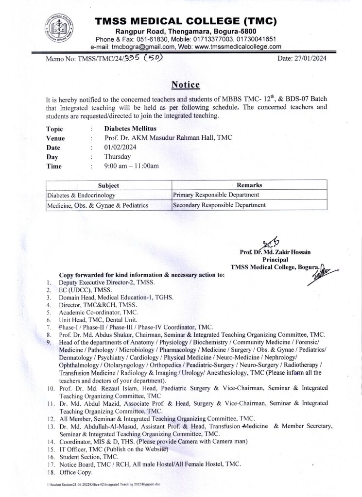 Notice on Integrated Teaching.