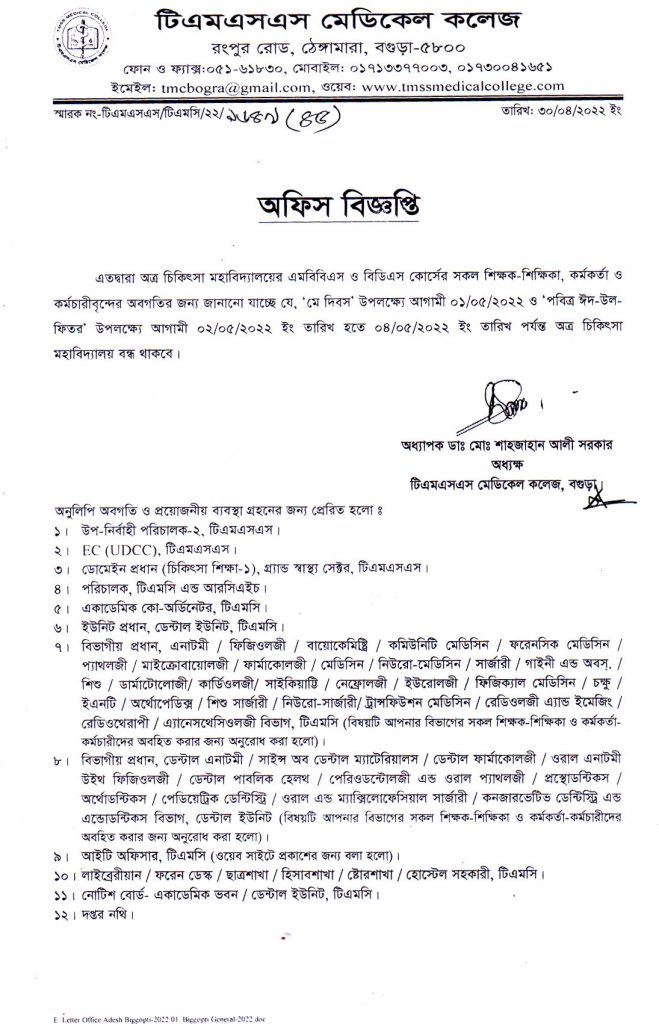 Office Notice For Eid-ul-Fitr